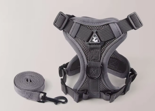 Arnés Ajustable para Perros Medianos y Pequeños color Gris + Correa de 1,5 m