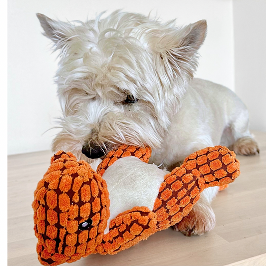 Juguete para mascota. Dinosaurio T-Rex. Naranja